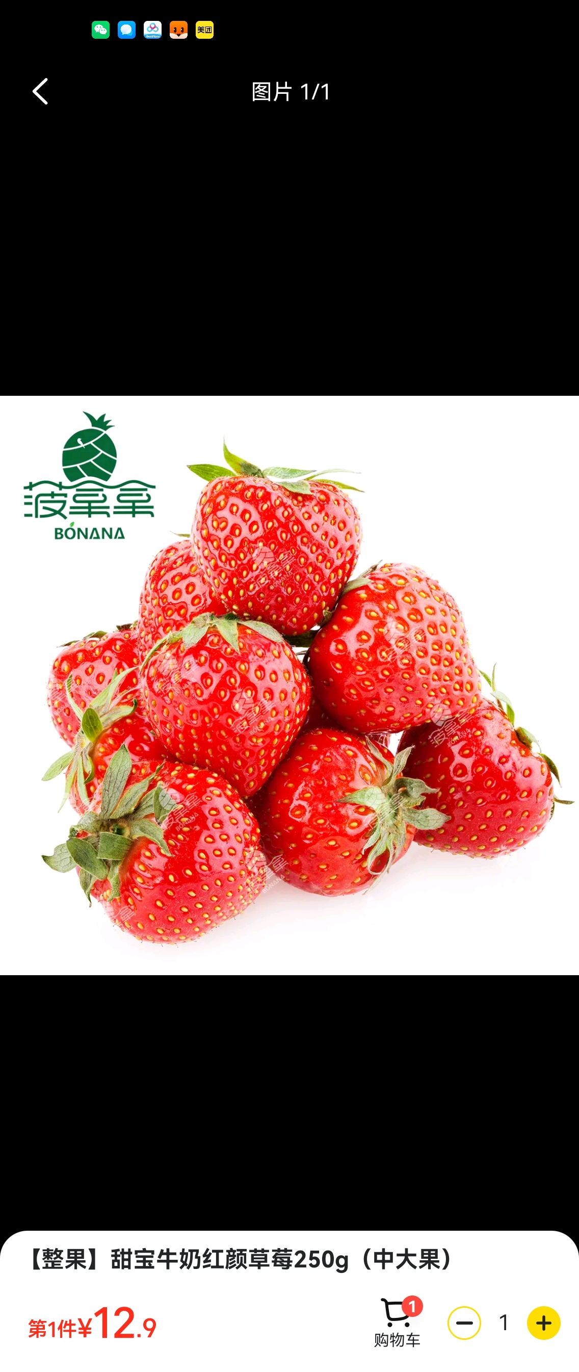【整果】甜宝牛奶红颜草莓250g(中大果)
