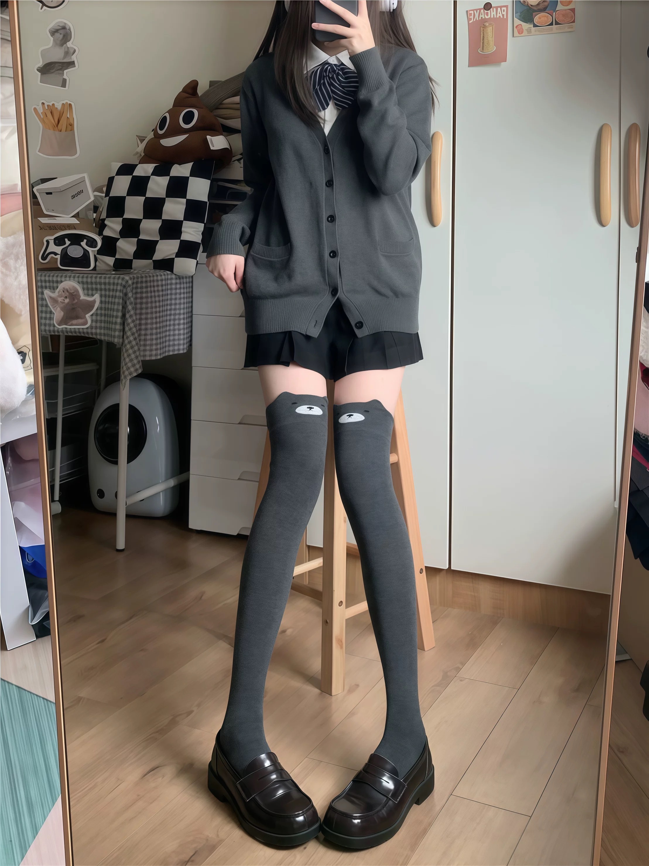 JK过膝袜可爱猫咪灰色长筒袜春秋少女卡通Lolita显瘦大腿袜洛丽塔